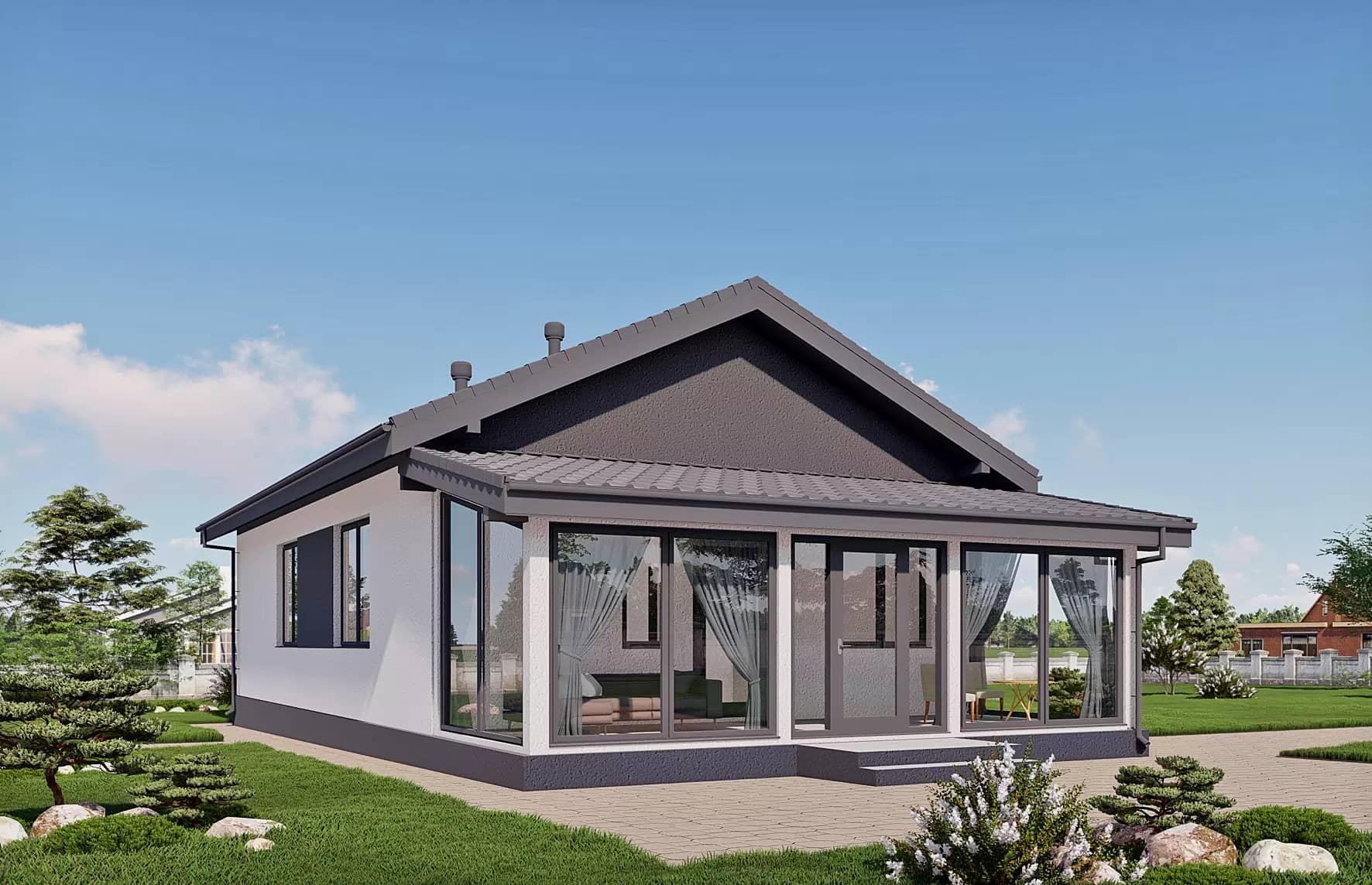 Выполняются все строительные работы, включая внутреннюю и внешнюю отделку, коммуникации и благоустройство.Завершение и сдача